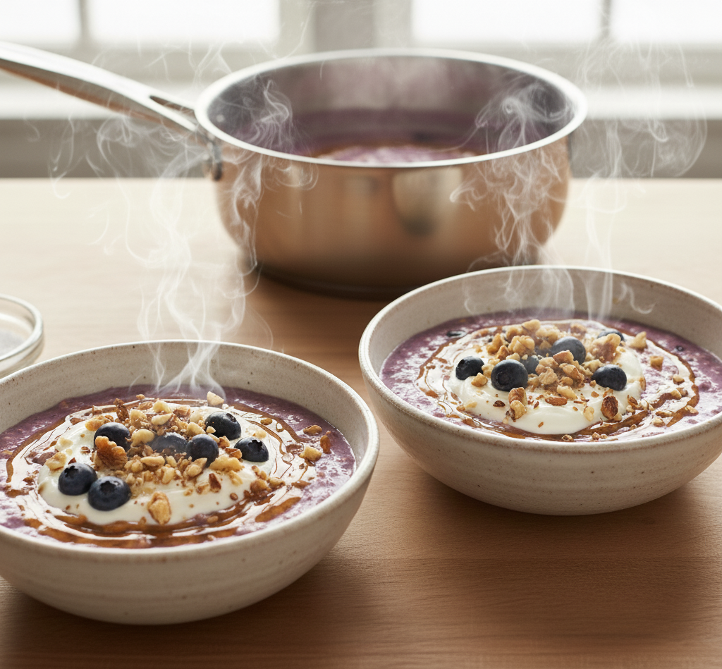 This Blueberry Glow Oatmeal Bowl is a warm, comforting meal that balances taste and nutrition. Rolled oats simmered to creamy perfection are topped with juicy blueberries, a drizzle of honey or maple syrup, and a sprinkle of nuts or seeds for crunch. Perfect for busy mornings, it takes just minutes to prepare while offering long-lasting energy and glowing skin benefits.